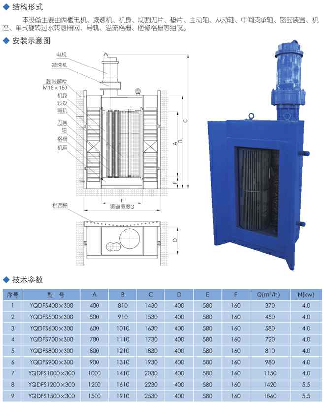 DFS型单毂式粉碎型格栅除污机